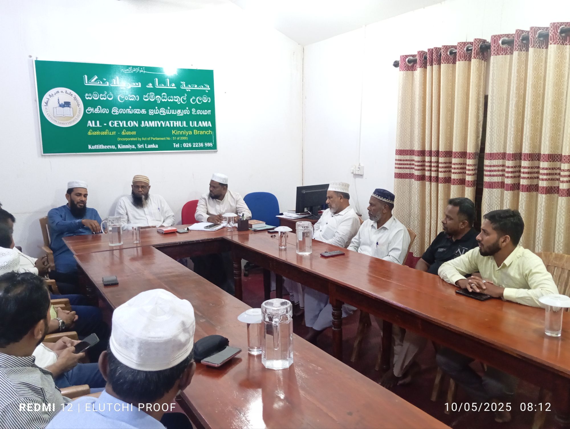 நேற்றைய கள விஜயத்தின் பின்னர் 2025.10. 05 சனிக்கிழமை இன்று காலை ஐக்கிய சமாதான கூட்டமைப்பின் தவிசாளர் உட்பட்ட குளாம் மற்றும் கொழும்பு மாநகர சபை உப தவிசாளர், உறுப்பினர்கள் சகிதம் திருகோணாமலை மாவட்ட, முத்துநகர் விவசாயிகளின் விவசாயக் காணி அபகரிப்பு/ வெளிநாட்டு தொழிற்சாலைகளுக்கு கொடுத்தமை தொடர்பாகவும், அதற்கு மாற்றீடாக அம்மக்களின் பூர்வீக பிரதான வீதியில் பள்ளிவாயிலை அண்மித்து அமைந்திருக்கும் காணியை வழங்குவது சம்பந்தமாகவும், கிழக்கு மாகாண அனைத்து பள்ளி வாயில்கள் சம்மேளனம், அனைத்து மாவட்ட உலமா சபைகள், சங்கங்களின் தலைவர்கள் அனைவரையும் ஒன்றிணைத்து கையெழுத்து வேட்டை ஒன்றை ஆரம்பித்து அதனூடாக அரசாங்கத்திற்கு இப்பிரச்சினை சம்பந்தமாக தெளிவுபடுத்தி பாதிக்கப்பட்ட மக்களுக்கான தீர்வை வெகு விரைவில் பெற்றுக் கொடுப்பதற்கு அதிரடி தீர்மானங்கள் கிண்ணியா ஜம்மியத்துல் உலமா சபையுடன் மேற்கொள்ளப்பட்டுள்ளது.