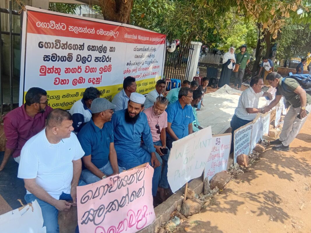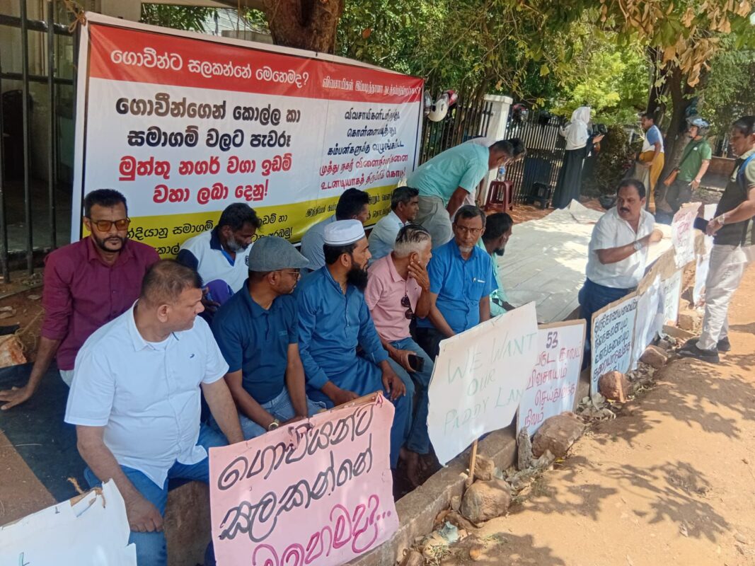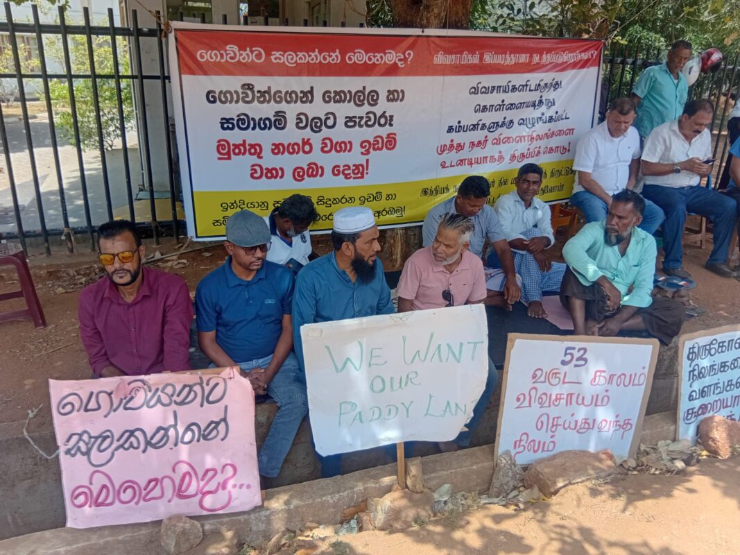2025.10.06 இன்றைய தினம் திருகோணாமலை மாவட்ட செயலகத்திற்கு முன்னால் முத்துநகர் விவசாயிகளின் தொடர் போராட்டத்தில் 19 ஆவது நாளான இன்று ஐக்கிய சமாதான கூட்டமைப்பின் தலைவரும் (மிப்ளால் மௌலவி) , அவருடைய குழுவினரும் கலந்து கொண்டனர். இப்போராட்டத்தில் கலந்து கொண்ட தலைவர் மிப்ளால் மௌலவி அவர்கள் பல உண்மை தன்மைகளை வெளிப்படுத்தியதுடன் , பிரதி அமைச்சர் அருண் ஹேமச்சந்திரா அவர்கள் ஆரம்பத்தில் முத்துநகர் விவசாயிகளின் காணி விடயத்தில் நீதியாகவும் நியாயமாகவும் செயல்பட்டவர் தற்சமயம் தொழிற்சாலைகளின் உரிமையாளர்களை சந்தித்த பின்னர் நீதமில்லாமல் அந்த விவசாயிகளுக்கு அநீதி இழைக்கும் வகையில் நடந்து கொள்வது மாத்திரமின்றி அந்த மக்களிடமே நேரடியாக இந்த காணி உங்களுக்குப் பெற்றுத் தர முடியாது என கூறியுள்ளார்; இத்தகைய இவருடைய இரு முகங்களைக் கொண்ட , இரு வருடங்களைக் கொண்டு நடந்து கொள்வதானது மிகவும் வருத்தம் அளிக்கிறது என தெரிவித்தார்.