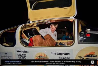 உலகைச் சுற்றி வந்த இளைய துணை விமானியாக மாறுவதற்கான வரலாற்று முயற்சியில் இறங்கியுள்ள 15 வயதான பிரிஸ்பேனைச் சேர்ந்த Byron Waller) நேற்று முன்தினம் (17) கொழும்பில் பாதுகாப்பாக தரையிறங்கினார்.