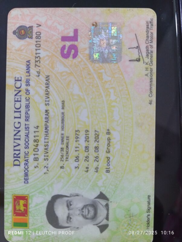 சாரதி அனுமதிப்பத்திர உரிமையாளர் தொடர்பு கொள்ளவும்….