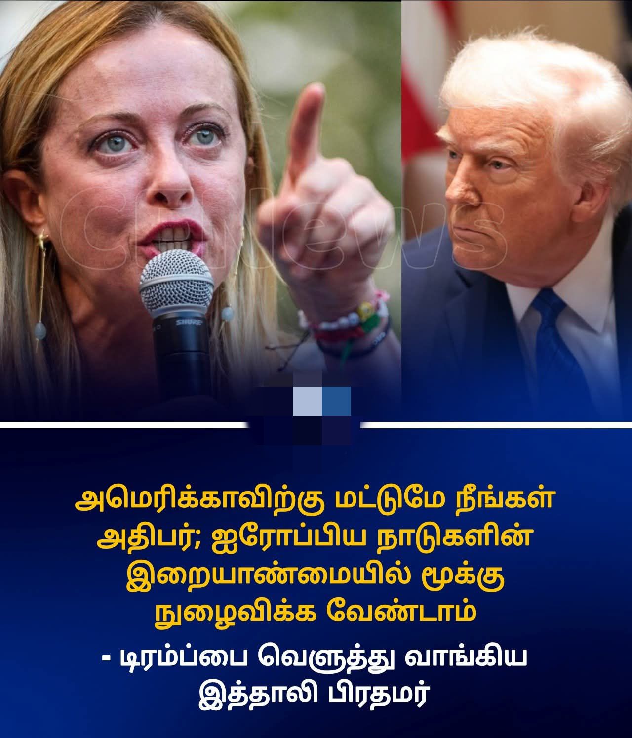 ட்ரம்! நீங்கள் அமெரிக்காவுக்கு மட்டும்தான் ஜனாதிபதி மற்றைய நாடுகளுக்குள் மூக்கை துளைக்காதே! இத்தாலிய பிரதமர் சீற்றம்!