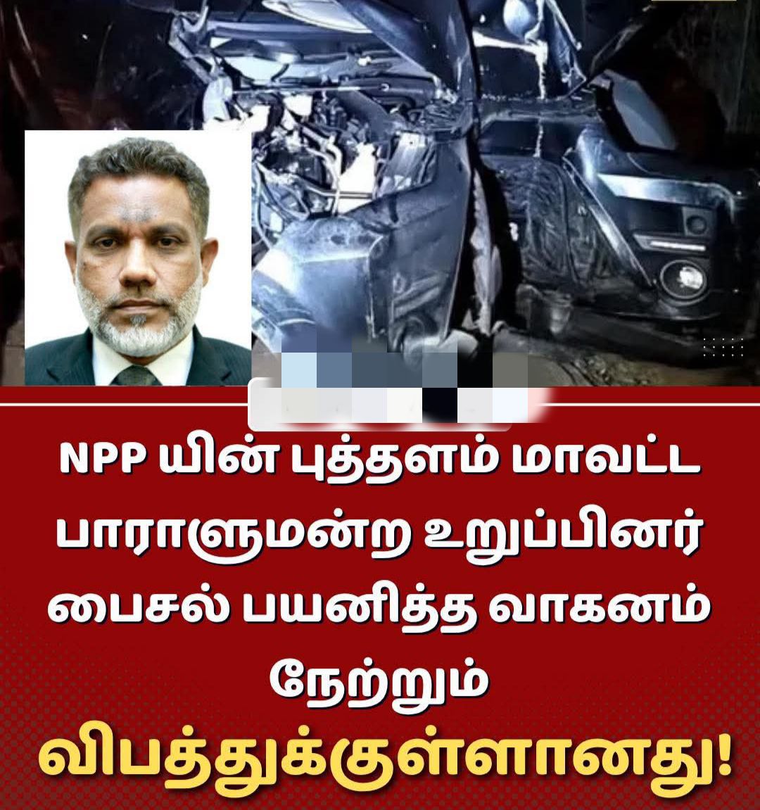 தேசிய மக்கள் சக்தி (NPP) கட்சியின் புத்தளம் மாவட்ட பாராளுமன்ற உறுப்பினர் (MP) மொஹம்மட் பைசல் செலுத்திய வாகனம், சிலாபம் பகுதியில் உள்ள பண்டாரவத்தை வளைவில் வீதியிலிருந்து விலகி சுவரில் மோதி விபத்துக்குள்ளானது.