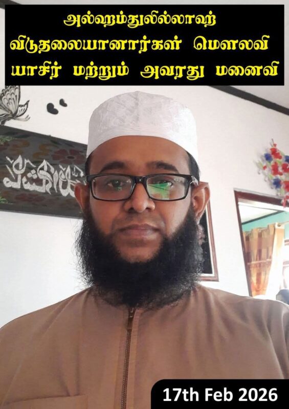 நிரபராதி என நிரூபிக்கப்பட்டு விடுதலையானார் யாஸீர் மௌலவி…..